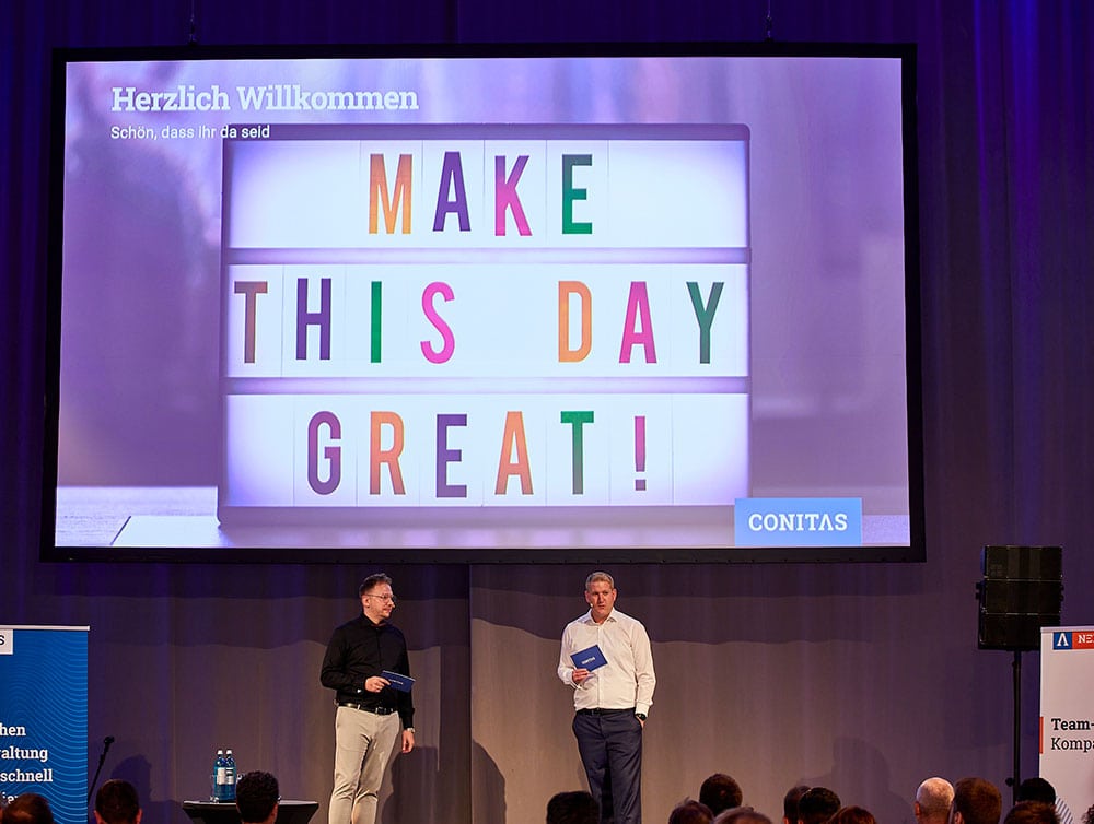 Wie kann man Herausforderungen proaktiv, optimistisch und lösungsorientiert begegnen? Diese Frage zog sich wie ein roter Faden durch das Programm der NEXT.KOMPAKT. Die Teamkonferenz der CONITAS, die vergangene Woche im Karlsruher Palazzo stattfand, bot ein dichtes Programm aus Keynotes, Vorträgen und Teambuilding – mit Referentinnen und Referenten aus der Digitalszene, der Motivations- und Kommunikationspsychologie und dem Extremsport. Moderiert haben Adrian Reich und Henning Peter von der CONITAS. Im Anschluss an die Konferenz wurde im Palazzo die Sommerparty gefeiert.