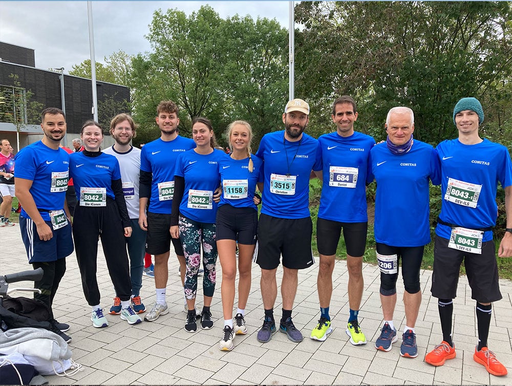 Lauf, CONITAS, lauf! 13 Läufer*innen aus verschiedenen Abteilungen, von HR bis IT-Betrieb, hatten hochmotiviert für die CONITAS beim Baden-Marathon teilgenommen. Zwei von ihnen bewältigten den kompletten Marathon, also die enorme Strecke von rund 42 km. Drei Läufer*innen nahmen am Halbmarathon teil und acht Teammitglieder hatten sich für den Staffel-Lauf (Team-Marathon) entschieden.