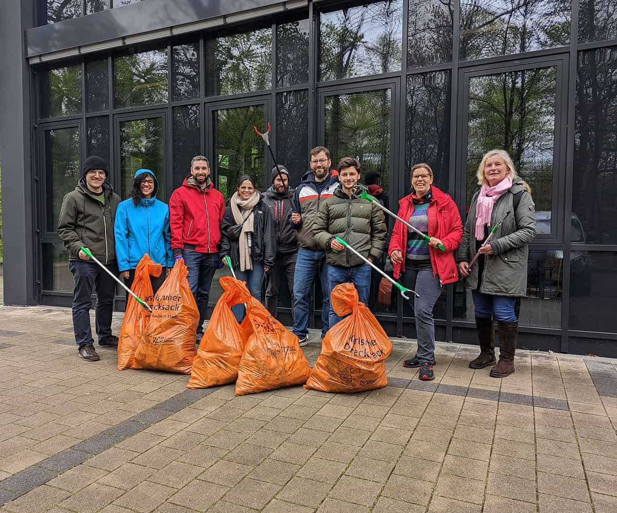 Ausgestattet mit Müllsäcken und Greifzangen haben sich CONITAS-Mitarbeiterinnen und Mitarbeiter aufgemacht, um den Bereich rund um das Steinbeis-Haus in der Willy-Andreas-Allee zu säubern. In drei Gruppen aufgeteilt konnten sie innerhalb von zwei Stunden jede Menge Müll sammeln. Von kleinen Plastik- und Papierstücken über jede Menge Flaschen und Becher bis hin zu ausgefallenen Fundstücken – einem Staubsauger oder einem Farbeimer – war einiges dabei, das definitiv nicht in die Natur gehört.