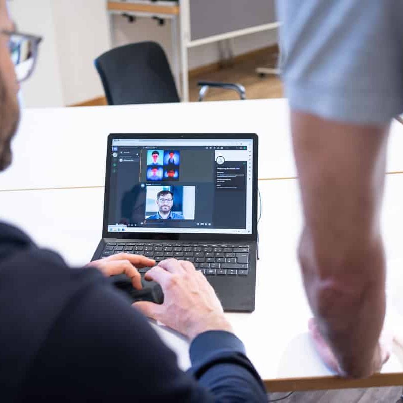 Nach dem intensiven Exkurs in die Welt der Künstlichen Intelligenz konnten sich die CONITAS-Kolleginnen und Kollegen bei Pizza und Getränken austauschen und das Thema in Einzelgesprächen vertiefen. Wer wollte, konnte in Hands-on-Sessions an aufgestellten Laptops selbst die eigenen Midjourney-Skills testen und das Tool näher kennenlernen.