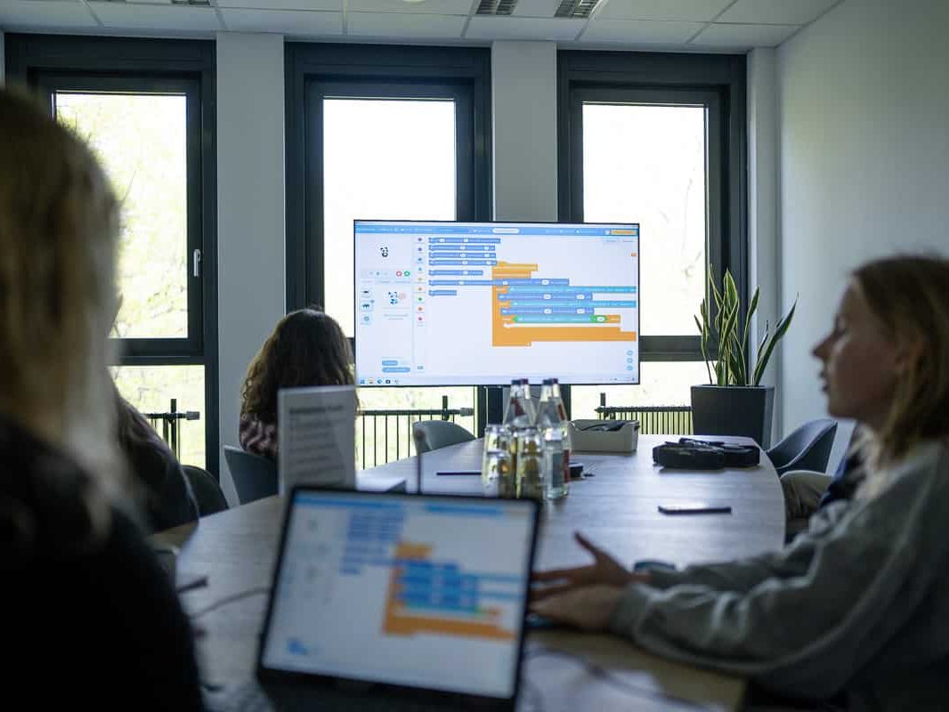Nachdem sie nun einiges über die CONITAS und Karrierechancen in der IT erfahren hatten, durften die Nachwuchstechies nun selbst zur Tat schreiten. In vier Kleingruppen, Team ABAP, Team Swift, Team Java und Team Python, programmierten sie einen Mini-Roboter. Angeleitet und unterstützt wurden die Schülerinnen dabei von Mentor*innen.
